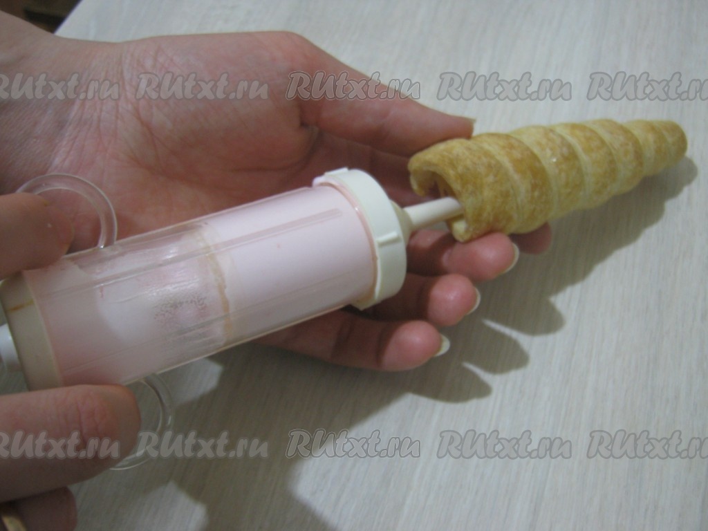 Готовые трубочки снимаем с конусов. Пока трубочки остывают, мы займёмся кремом.