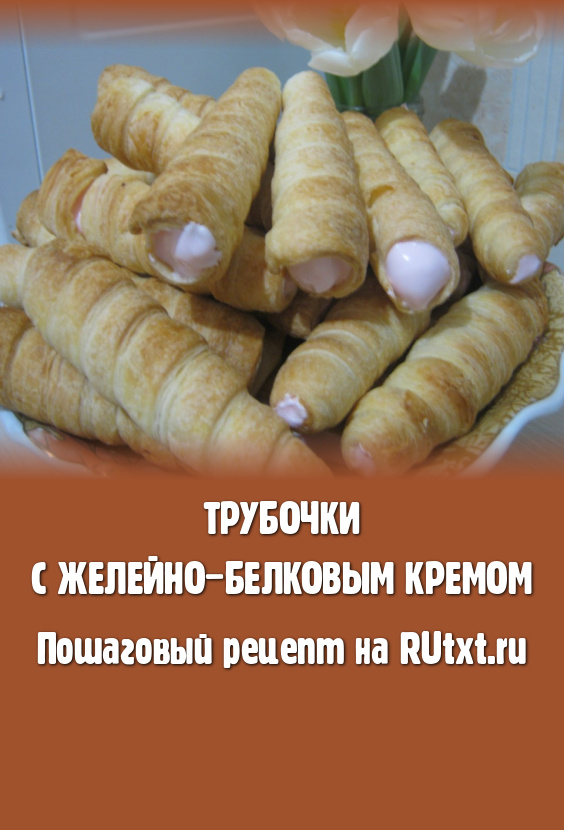 Трубочки из слоёного теста хорошо сочетаются с желейно-белковым кремом. Этот крем получается ароматным, нежным и не вытекает. Его структура и вкус напоминает нежный зефир.