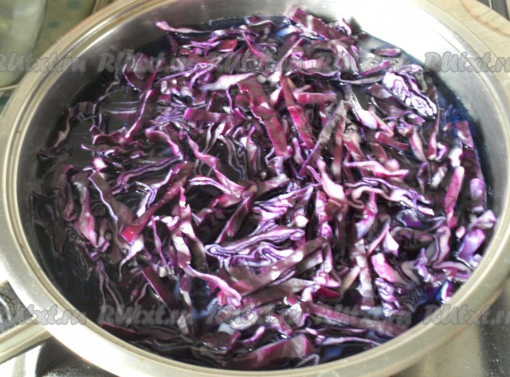 Заливаем холодной водой, ставим на огонь и отвариваем до мягкости (при желании можно и просто обдать кипятком). Пока готовится капуста, заливаем изюм кипятком.