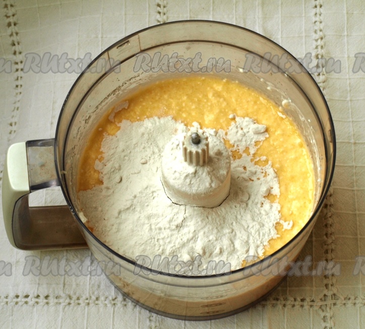 Для получения начинки в отдельной ёмкости творог смешиваем с сахаром, яйцами и сметаной. Взбиваем на медленной скорости в комбайне (или пробиваем до однородности погружным блендером) до однородности, затем добавляем ванильный сахар и 3 столовых ложки муки, взбиваем до однородности. Творожная начинка должна получиться в меру густой, если она получилась жидковатой, добавьте ещё 1 столовую ложку муки и перемешайте.