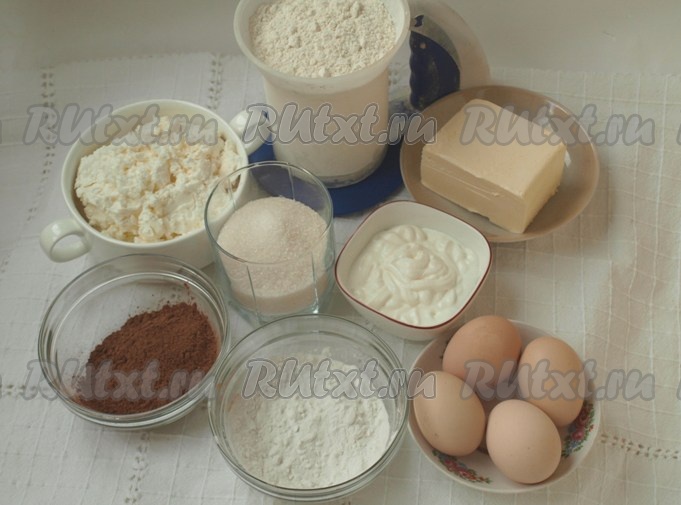 Подготовить продукты. Творог желательно брать жирностью не менее 9%. Сметану лучше всего использовать жирностью не менее 20%. Сливочное масло для замешивания теста должно быть комнатной температуры, поэтому из холодильника его нужно будет достать заранее, чтобы оно успело нагреться до комнатной температуры и стать достаточно мягким.