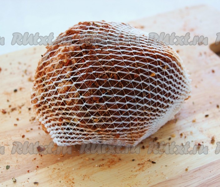 Хочу заметить, что мясо не обязательно должно быть целым куском, можно готовить и из отдельно взятых крупных кусочков. Тщательно упаковываем мясо в бинт.
