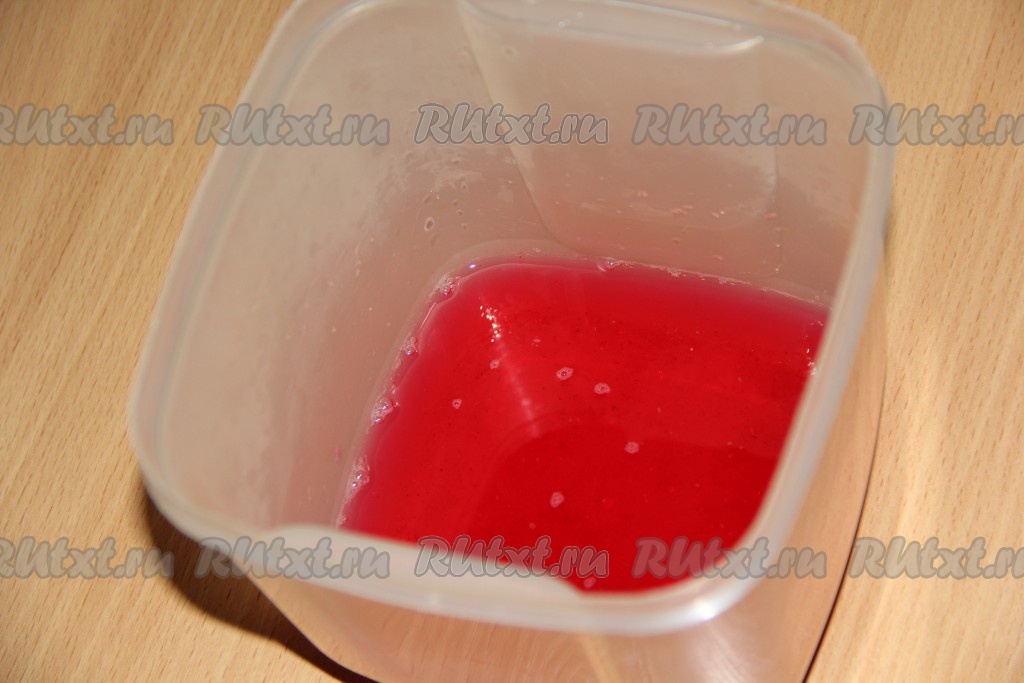 Желе залить горячей водой, хорошо размешать и немного остудить.