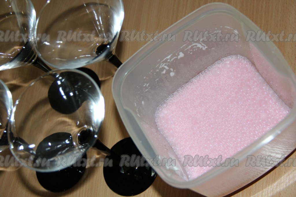 Взбить миксером тёплую желатиновую смесь, затем добавить сметану и сахарную пудру. Всё хорошо взбить на высокой скорости до множества пузырьков.