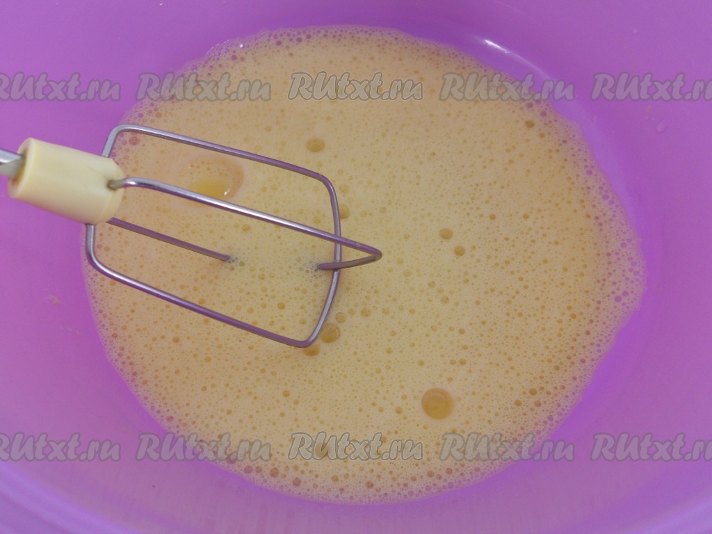 Отдельно яйца взбить миксером (или венчиком) со щепоткой соли до пышной пены.