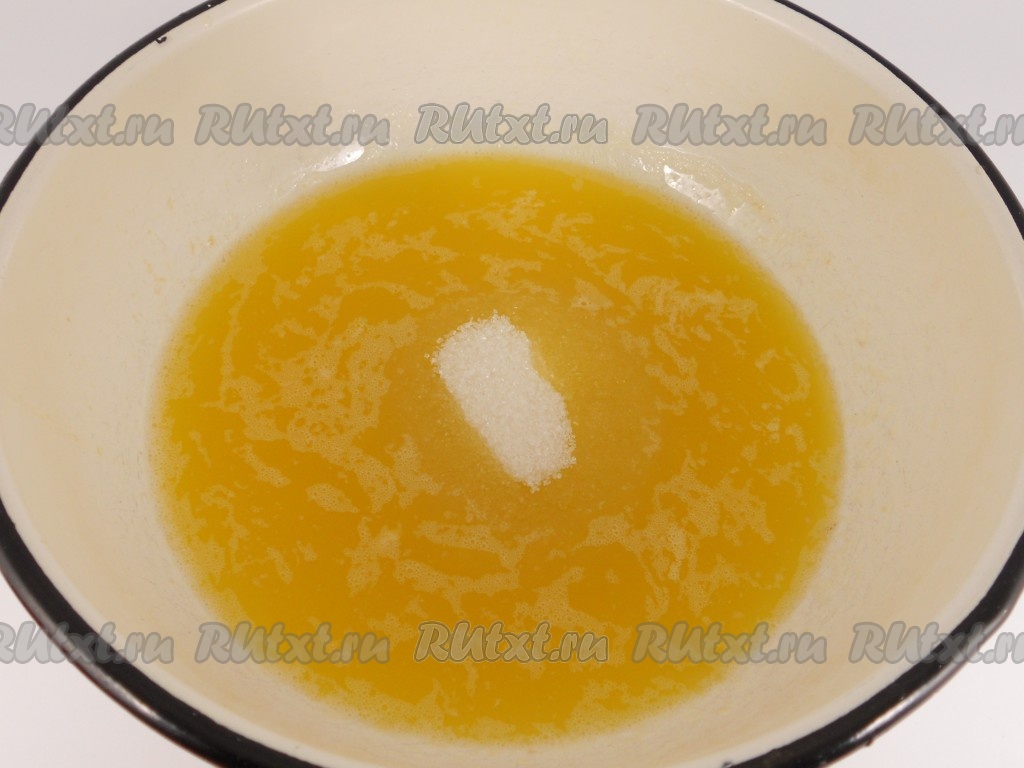 Маргарин растопить (я растопила в микроволновке), дать остыть, перелить в объёмную миску, всыпать 1 стакан сахара, хорошо перемешать.
