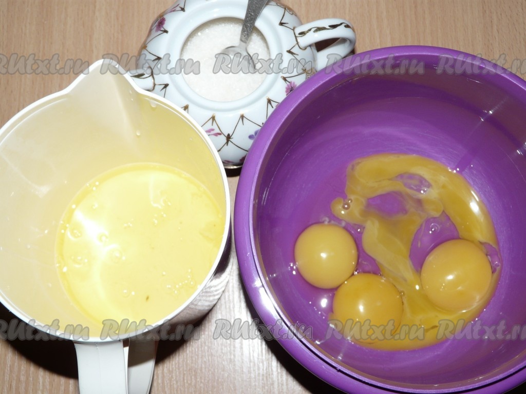 Куриные яйца для приготовления бисквита должны быть холодными (из холодильника). Аккуратно разделить яйца на белки и желтки.