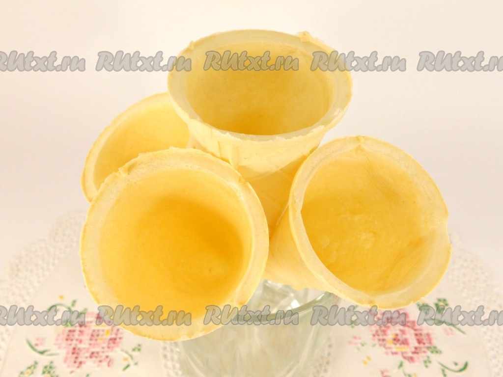 Подготовить вафельные конусы. Можно использовать и другие вафельные формочки. Ну а если таких формочек и конусов нет, можно будет просто раскладывать готовое мороженое ложкой по креманкам или тарелкам.