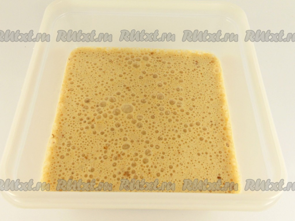Получившуюся жидкую, пенистую смесь перелить в пластиковую форму и поставить на ночь в морозилку. Перемешивать или взбивать мороженое в процессе замораживания не нужно.