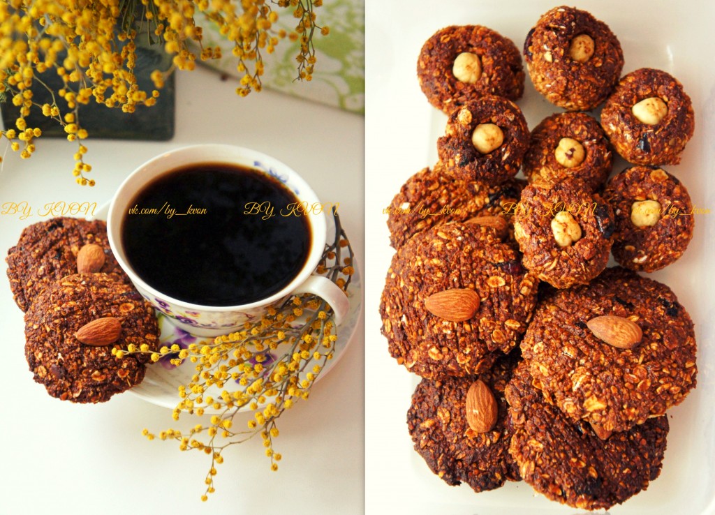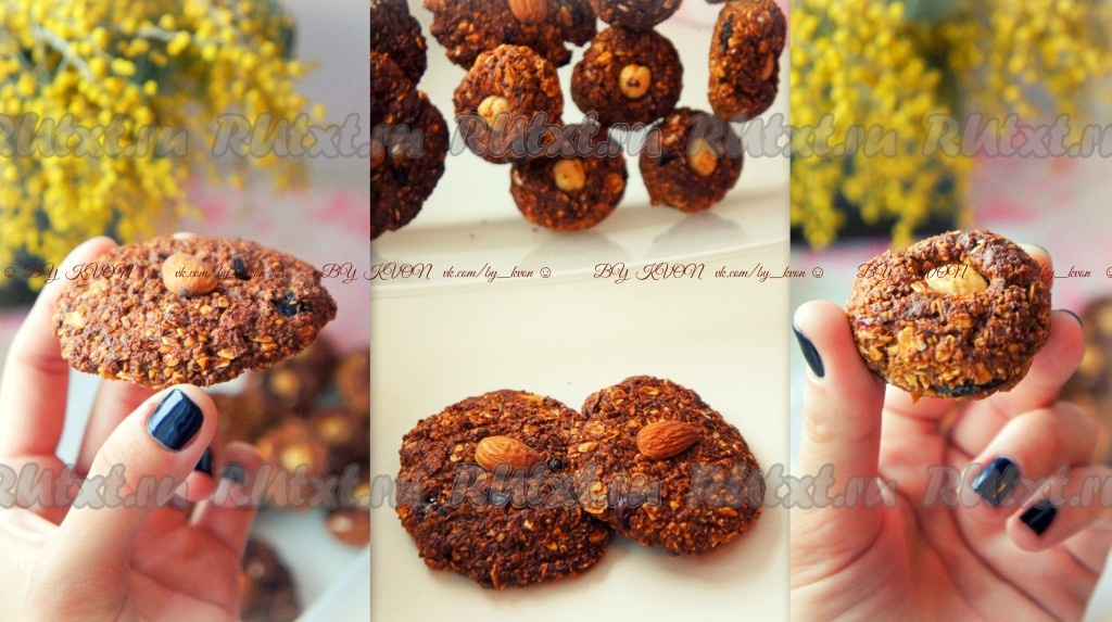 Заранее подготовьте овсяные хлопья, просушите их при температуре 160-180 градусов в духовке (15-20 минут). К "тесту" добавить подсушенные овсяные хлопья.