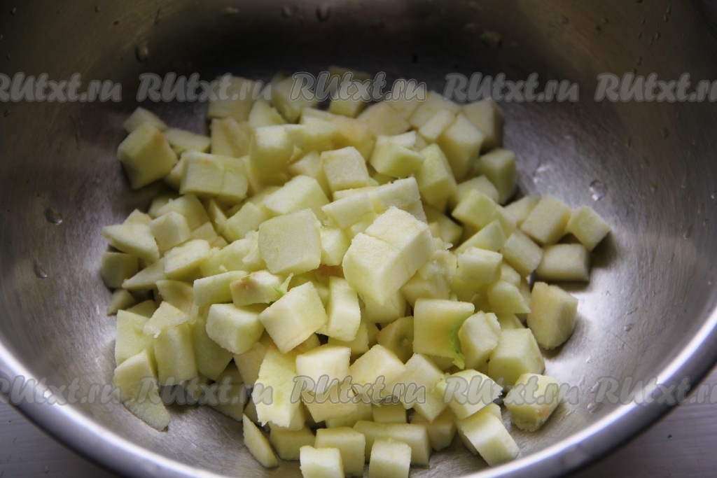 Яблоко очистить от кожуры и нарезать кубиками.