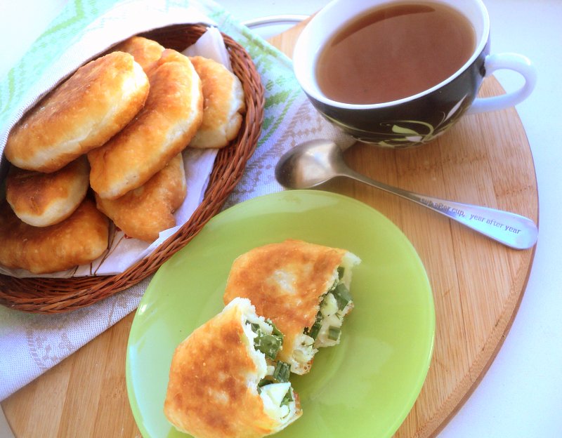 Пирожки с начинкой из зелёного лука и яиц родом из детства. Такие пирожки жарила мама весной, когда появлялся первый зелёный лучок. Теперь зелёный лук можно купить круглый год, но всё равно традиционно я чаще всего готовлю такие пирожки весной. Дрожжевое тесто для этой выпечки замешивается на кефире. Пирожки из такого теста, жаренные на сковороде, получаются аппетитными, пышными и очень вкусными. Советую и вам их приготовить!