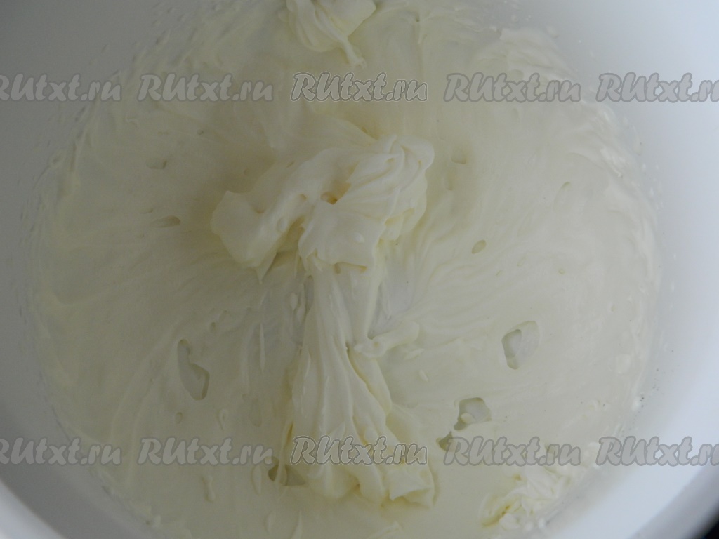 Для украшения фруктово-ягодного смузи взбиваем сливки с сахарной пудрой.