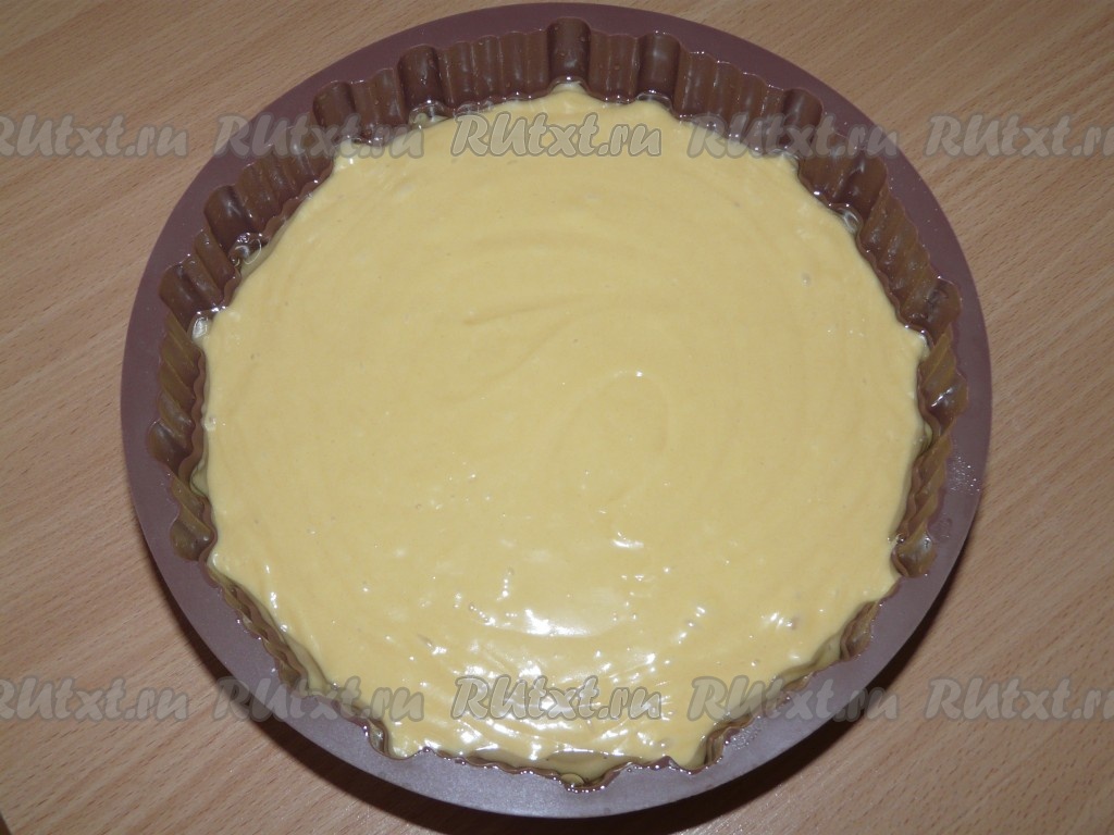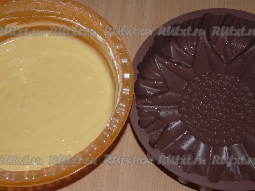 К смеси творога и яиц добавить мучную смесь, перемешать ложкой (или силиконовой лопаткой). Творожное тесто для кекса должно получиться однородным, напоминающим сметану средней густоты. Форму для выпечки смазать растительным маслом.