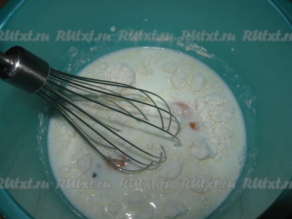 Для приготовление крема нужно 250 миллилитров молока, яйца и муку соединить и взбить венчиком до получения однородной массы (без комочков).