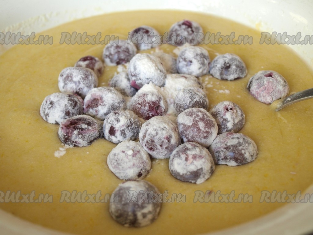 Если ягоды заморожены, их нужно разморозить, а выделившуюся жидкость слить. Если ягоды свежие, их нужно вымыть и немного обсушить. Из ягод, таких как вишня, черешня, нужно удалить косточки. Обвалять свежие (или размороженные) ягоды в муке (или крахмале) и добавить в тесто.