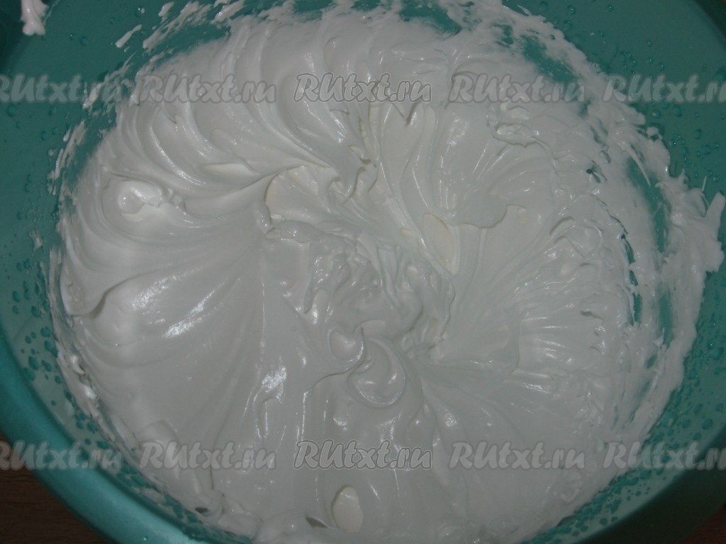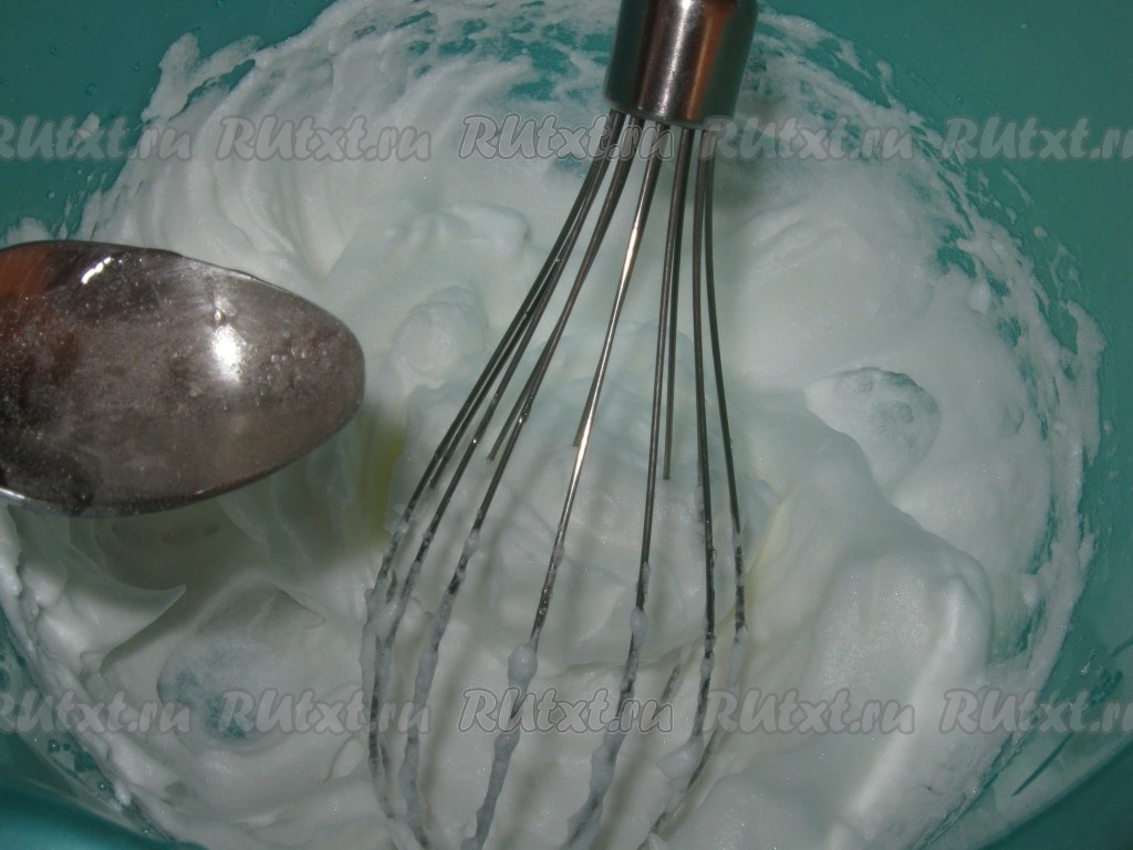 В это время взбить белок в густую пену.
