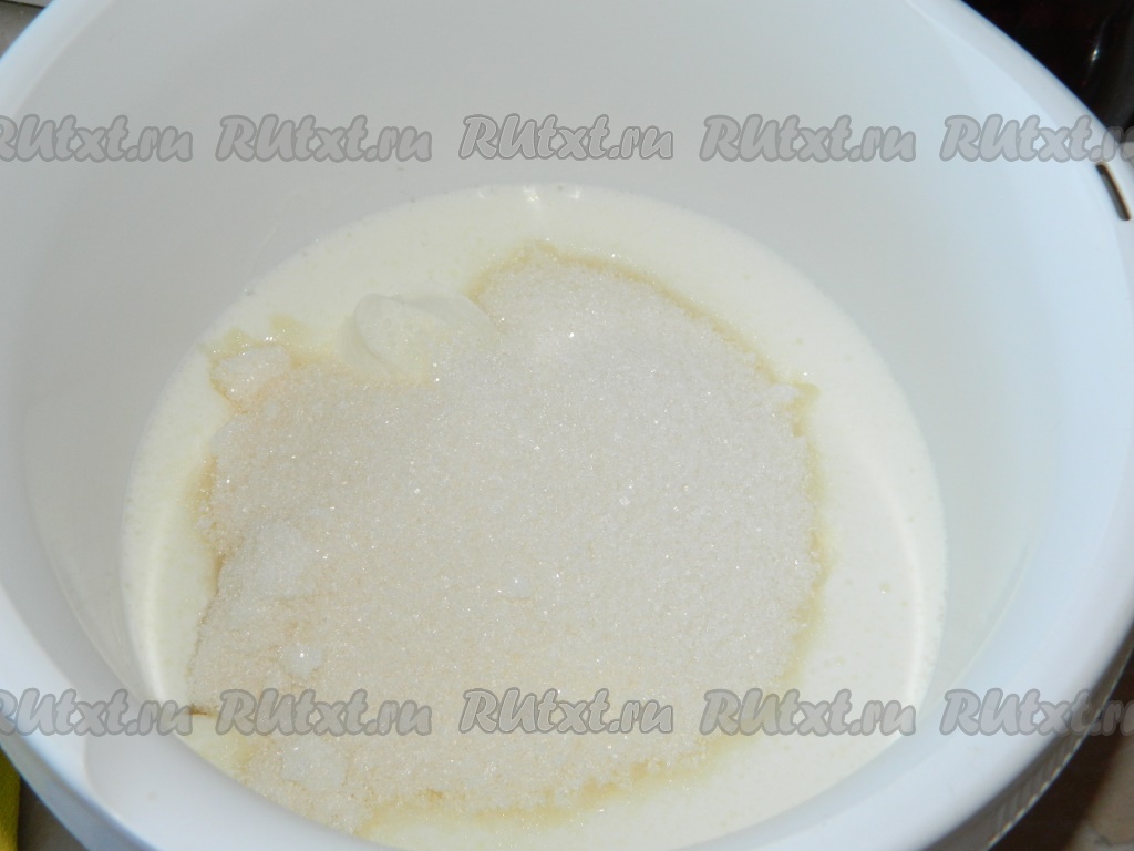Добавим сахар, ванилин. Хорошо перемешаем.