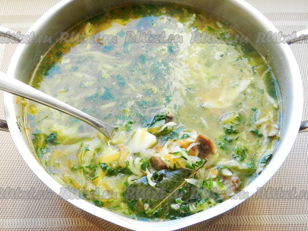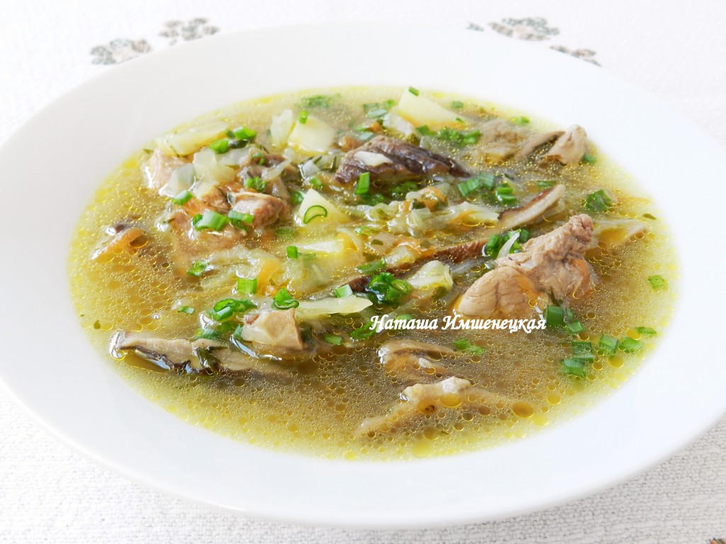 Вкусный и наваристый мясной суп с грибами готов!