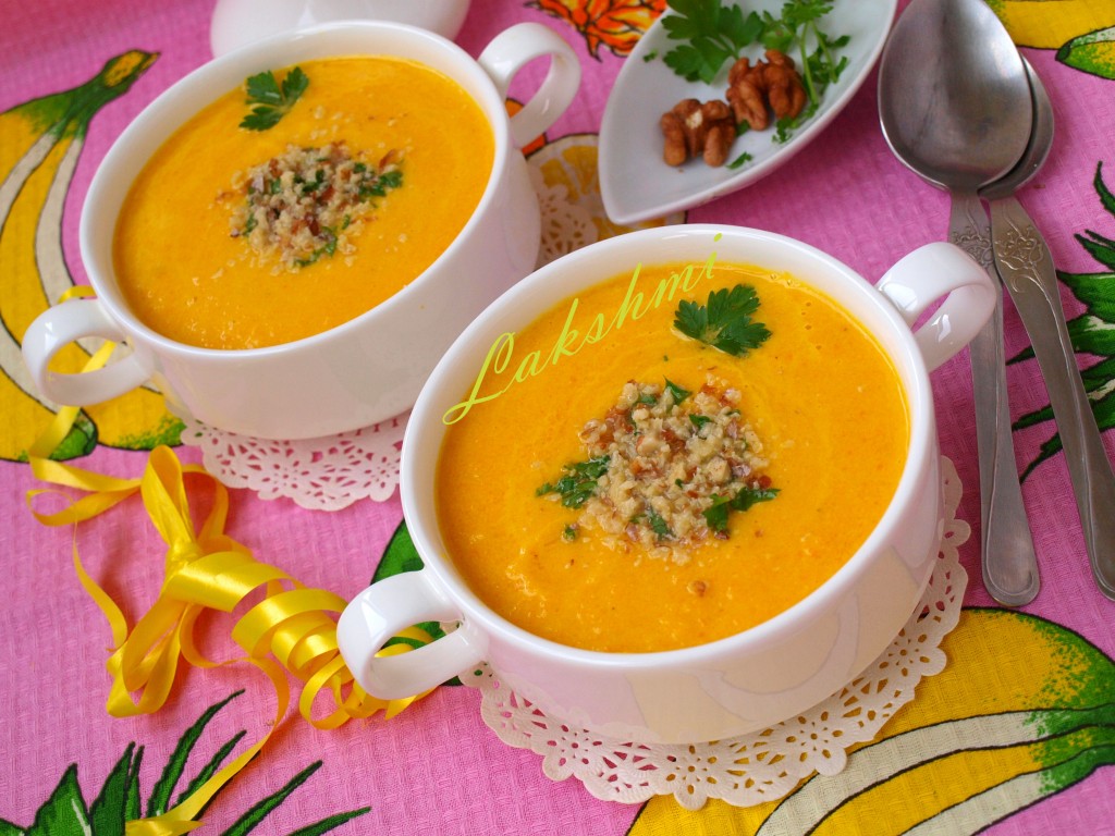 Морковь в этом супе - основной ингредиент, поэтому её должно быть много. Именно она и придаёт супу такой солнечный вид.