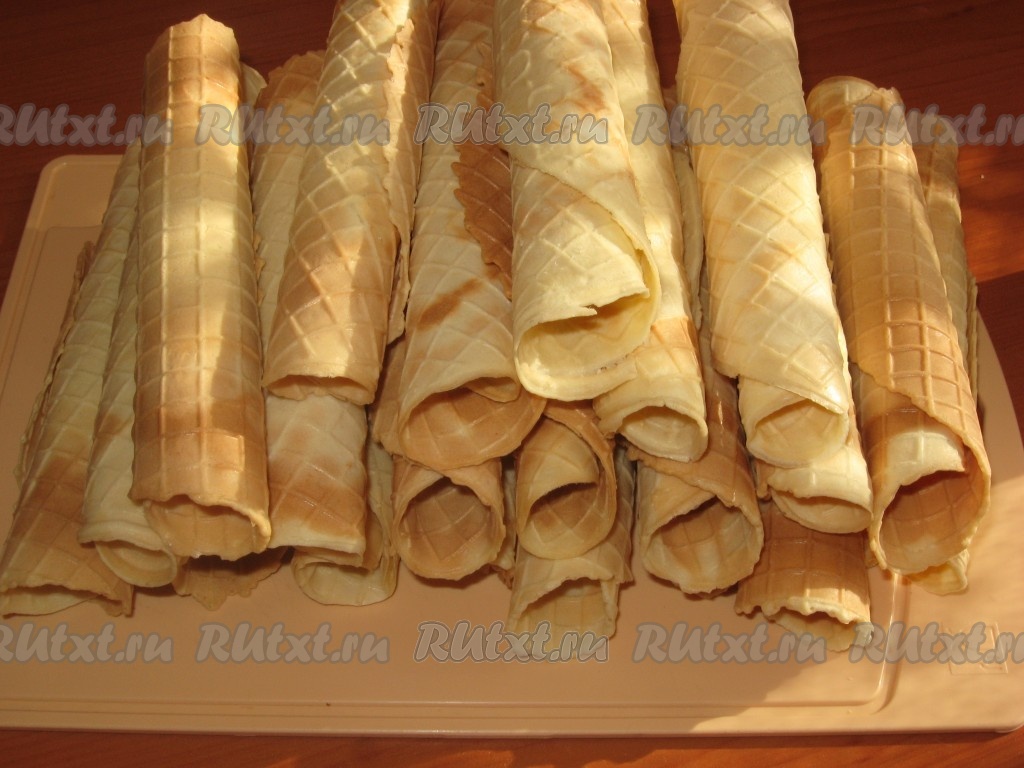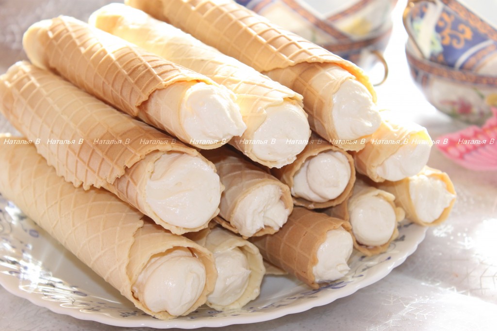 Вафельные трубочки, наверно, одно из самых любимых лакомств в детстве. У каждого есть свой, семейный, рецепт, я всегда их делала на сливочном масле. Но вот мне попался рецепт, я бы сказала, более экономичный и более диетический - на воде! Вафли получаются очень хрустящими, но не хрупкими, то есть их спокойно можно наполнить кремом и они на раскрошатся, как в масляном рецепте - там надо действовать предельно аккуратно! И еще, что интересно, вафельные трубочки долго остаются хрустящими и даже масляный крем не делает их мягкими! Попробуйте и вам обязательно понравится!
