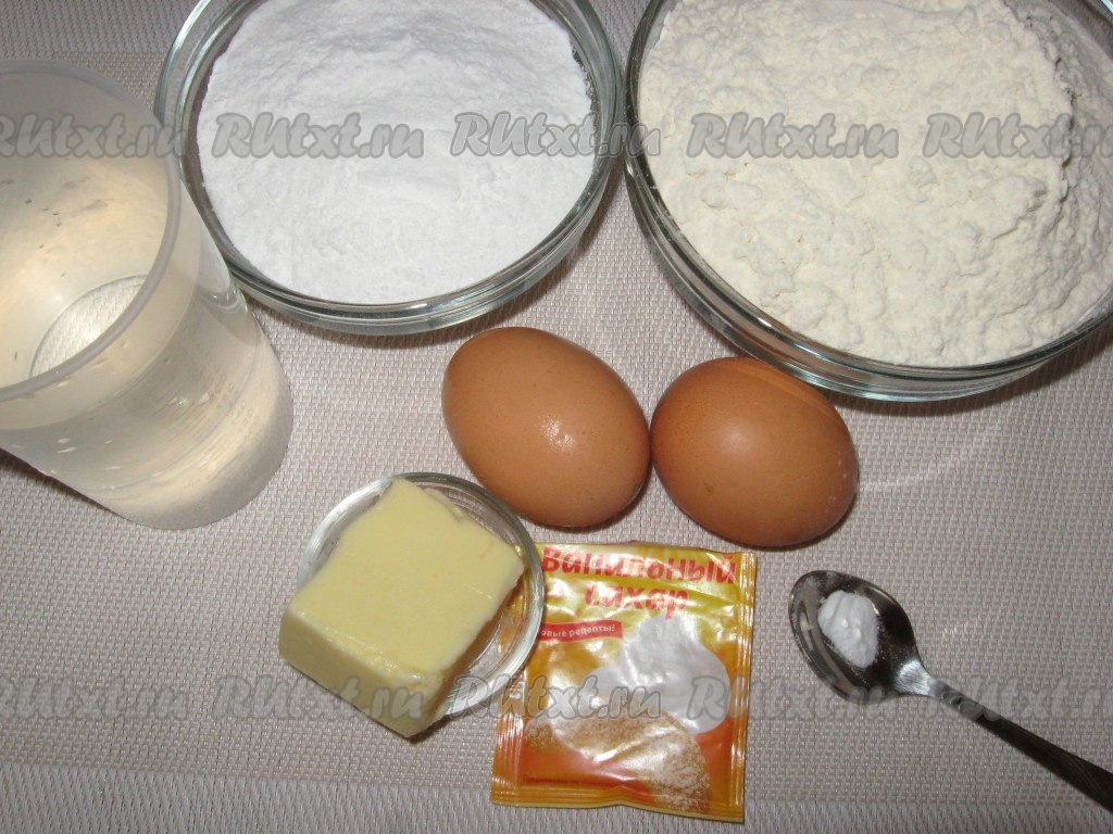 Затем постепенно всыпать просеянную муку, соду, ванильный сахар и влить остатки воды, перемешать до однородности.