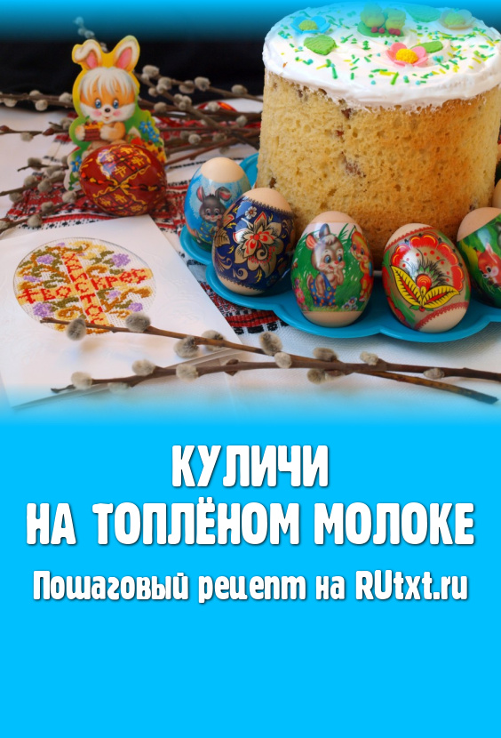 Пасхальные куличи, приготовленные на топлёном молоке, получаются ароматными, вкусными и сладкими. Прекрасное праздничное блюдо! Из данной нормы продуктов получается 4 кулича диаметром 15 см.
