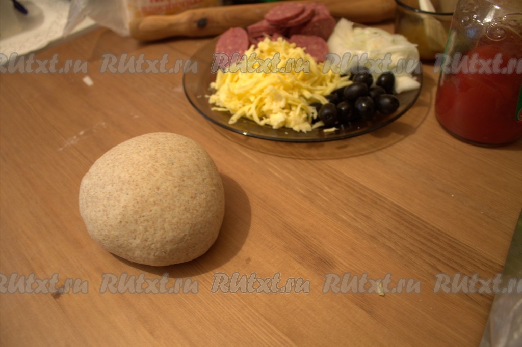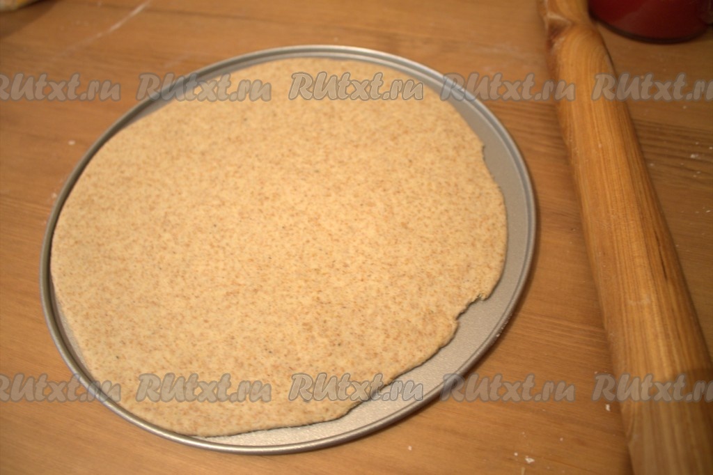 Бездрожжевое тесто разделить на 2 части (или сделать одну большую пиццу, как вам удобно). Раскатать тесто.