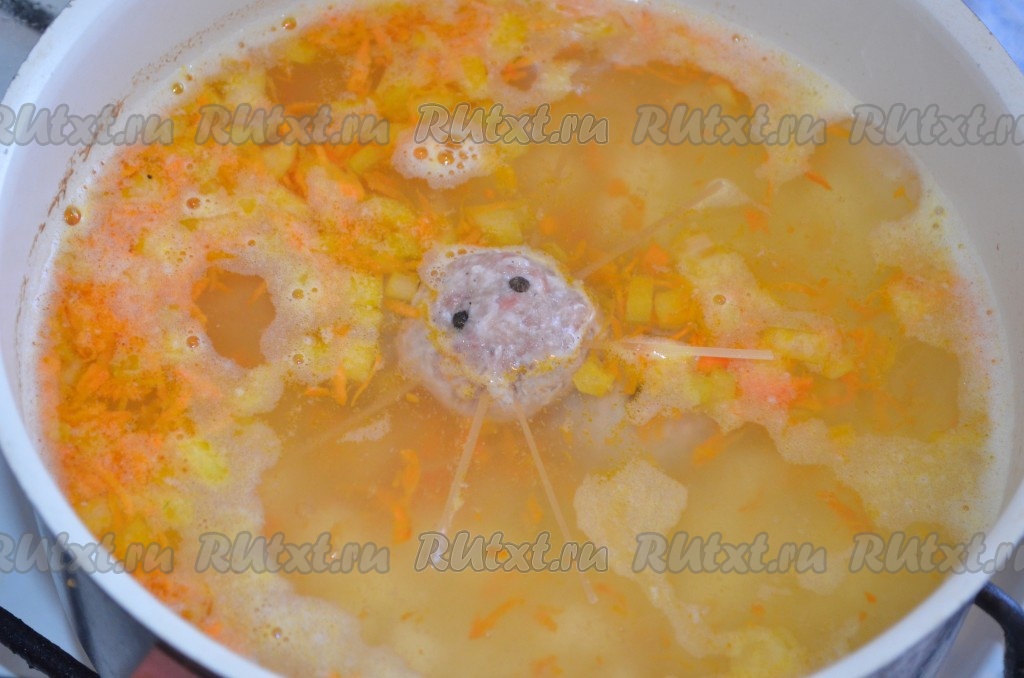 Предлагаю приготовить вот такой веселый супчик для детей с фрикадельками. Дети, которые не любят первое, думаю, с удовольствием захотят попробовать забавных осьминожек. Проверено!
