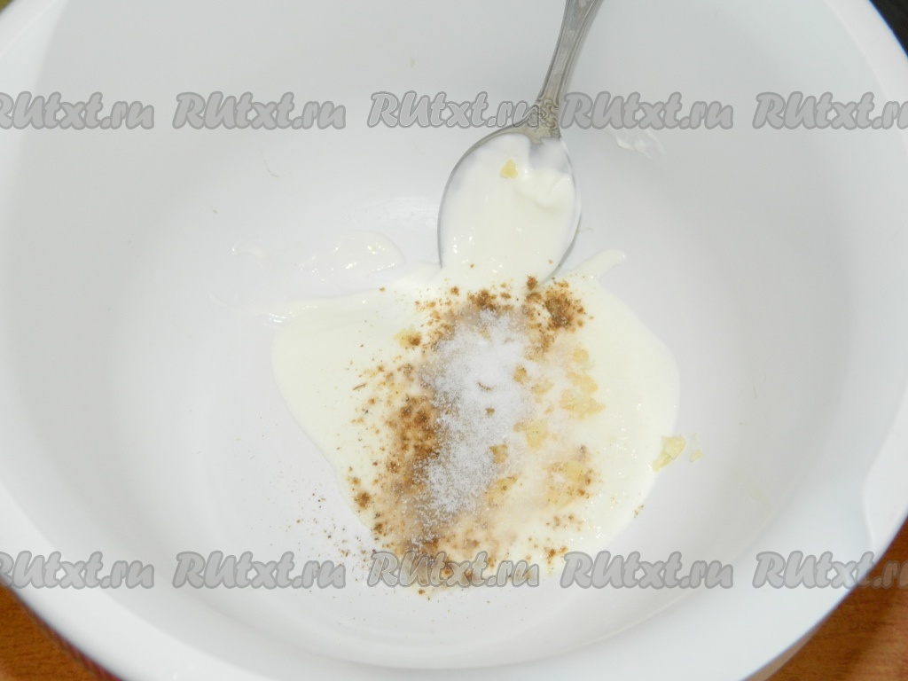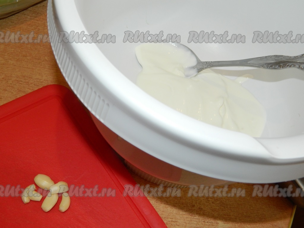 Чеснок измельчить и добавить к сметане.
