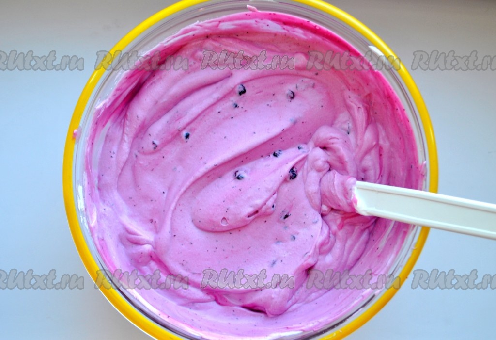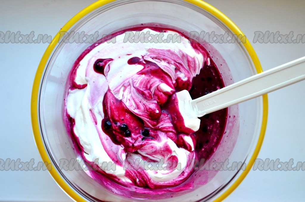 Чернику смешать с сахаром и лимонным соком, нагреть, но не доводить до кипения. Слегка остудить, чтобы масса стала теплой, и добавить желатин (листовой желатин предварительно замочить в холодной воде минут на 10). Все перемешать. Сливки взбить в пышную пену. В большой миске смешать чернику с желатином, йогурт, добавить взбитые сливки.