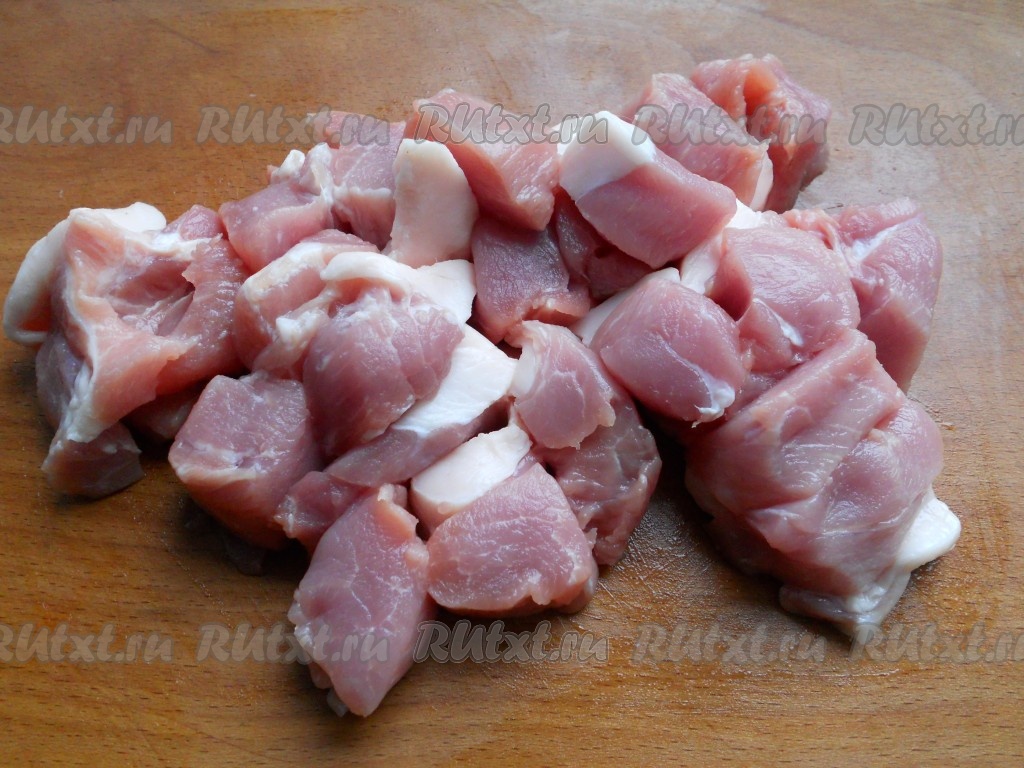 Свинину порезать средними кусочками.
