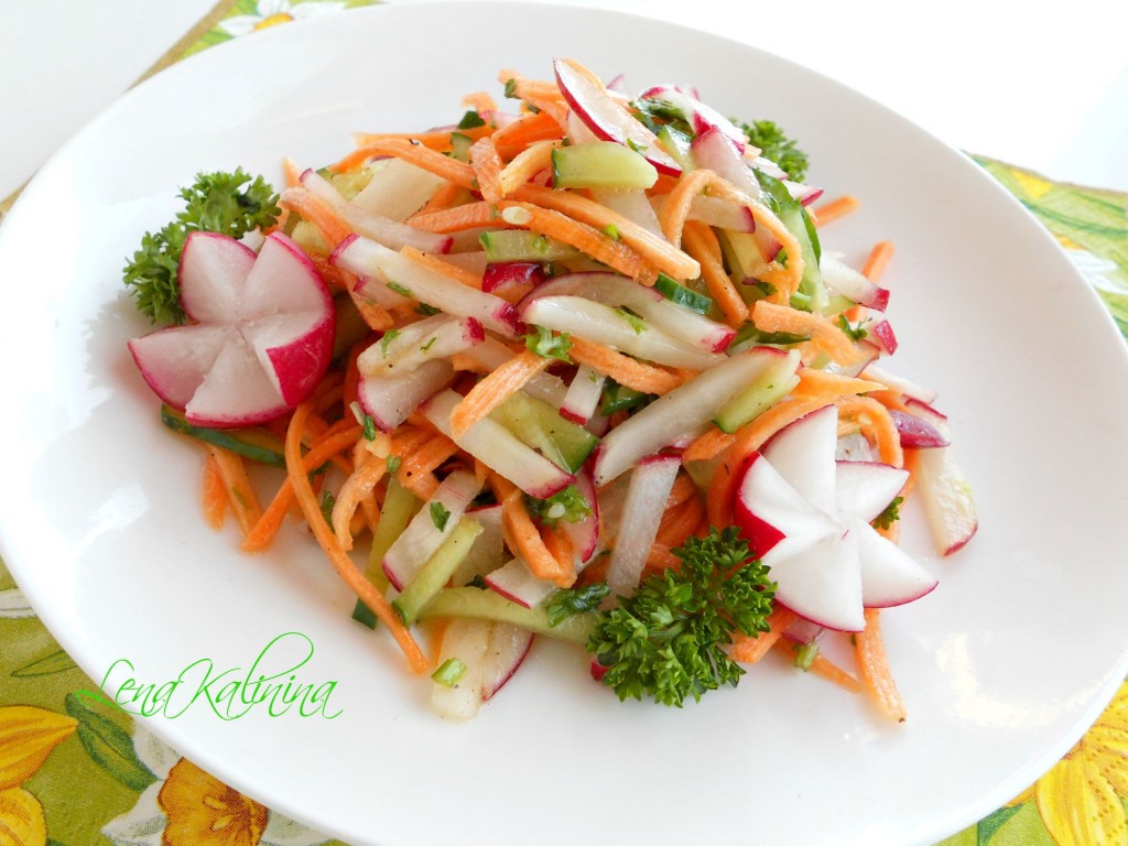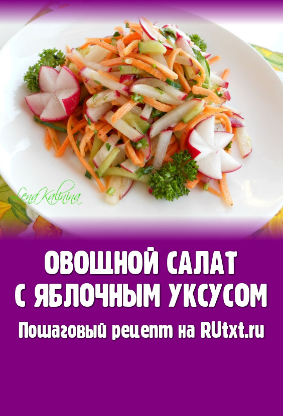 Хрустящий весенний овощной салат, заправленный яблочным уксусом, маслом и мёдом, сразу же подать к столу. Это постное блюдо готовится за считанные минуты, а получается ярким, аппетитным, с приятным сладковатым вкусом, обязательно попробуйте!