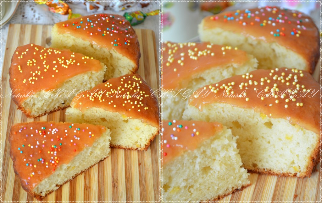 Перед подачей ароматный, очень вкусный пирог украсить на своё усмотрение (я остывший пирог смазала яблочным джемом и присыпала кондитерской посыпкой).
