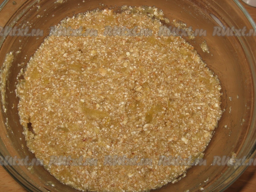 Измельченные хлопья подмешать к яблочному пюре - должна получиться густая масса.