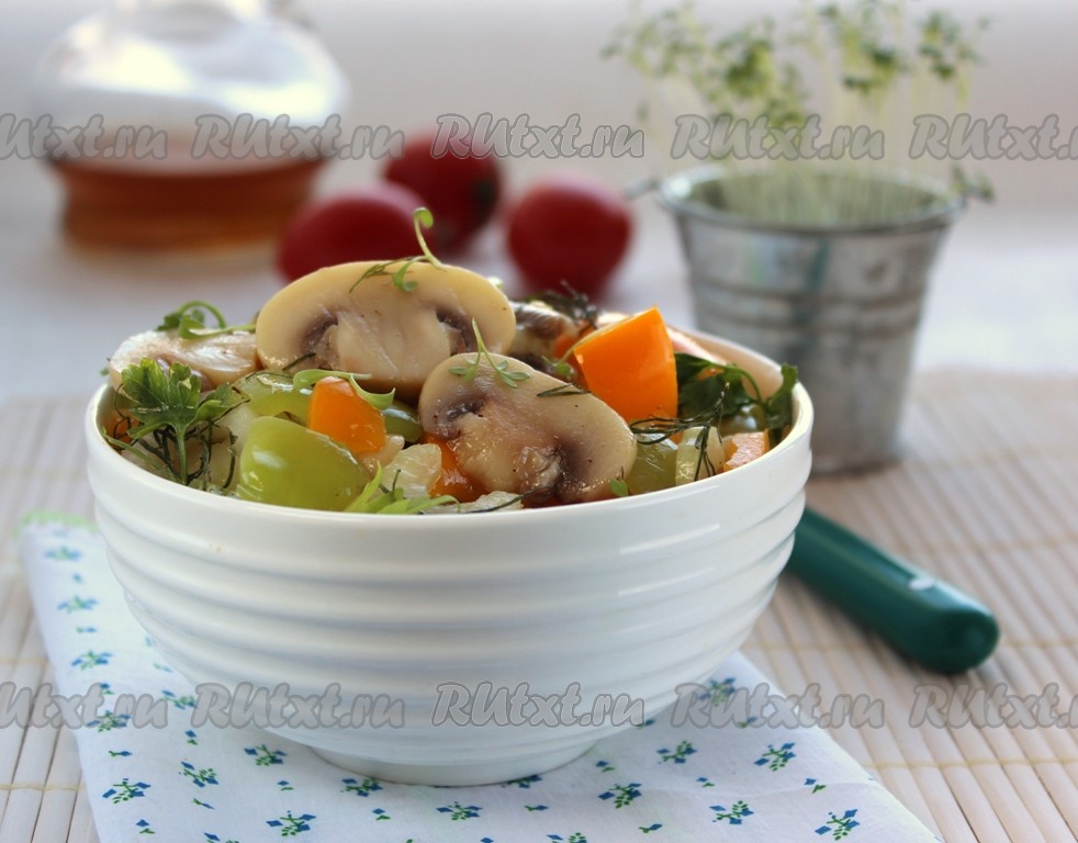 А если дать салату с шампиньонами и болгарским перцем настояться, а ещё лучше попробовать на следующий день, это будет взрыв вкуса!