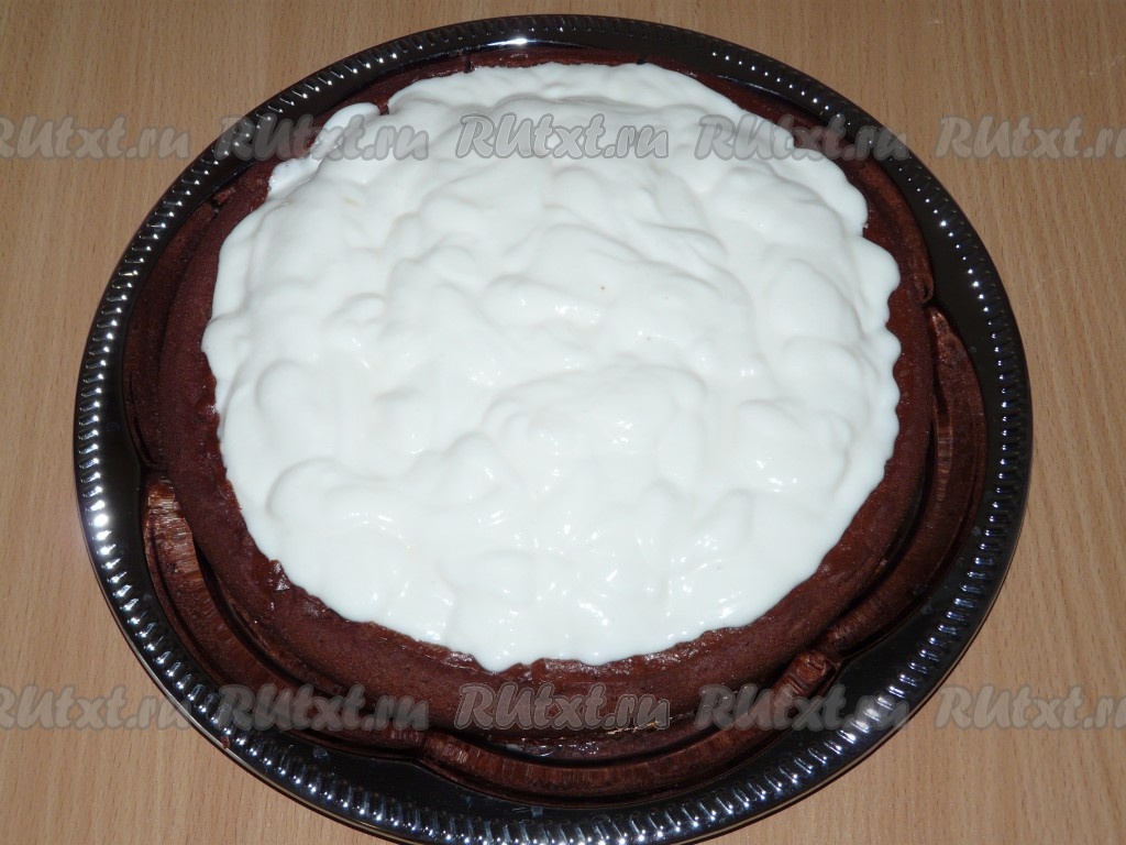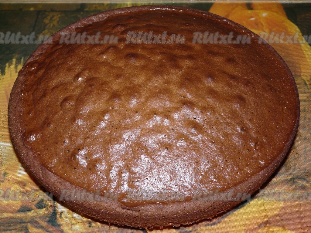 Выпекать корж при температуре 180 градусов примерно 35-40 минут. Готовность проверить зубочисткой.