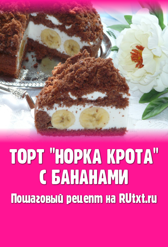 Хочу поделиться рецептом тортика с бананами с интересным названием "Норка крота". Такой торт делаю не первый раз и каждый раз гости в восторге! Торт получается очень вкусным, нежным и красивым на разрезе.