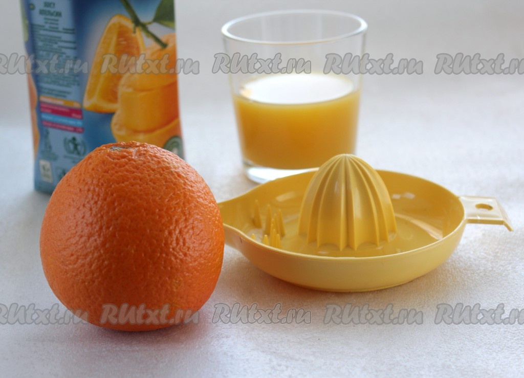 Нам понадобится полстакана апельсинового сока. Можно воспользоваться свежевыжатым соком из апельсина или соком из пакета.