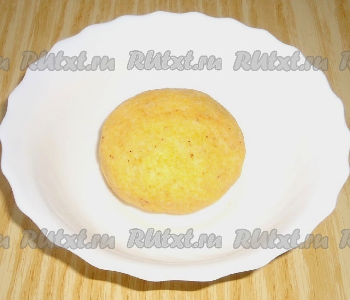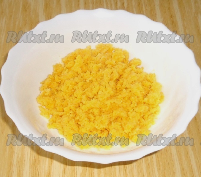 Сначала приготовим тарталетки, для этого кукурузную муку нужно перетереть с размягчённым сливочным маслом.