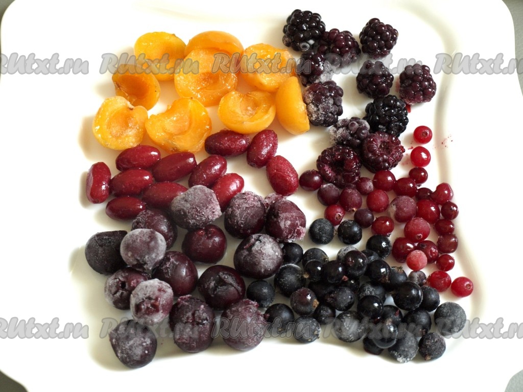 Ягоды и фрукты можно брать любые, в зависимости от сезона и ваших вкусовых пристрастий. Можно использовать замороженные фрукты, предварительно их разморозив.