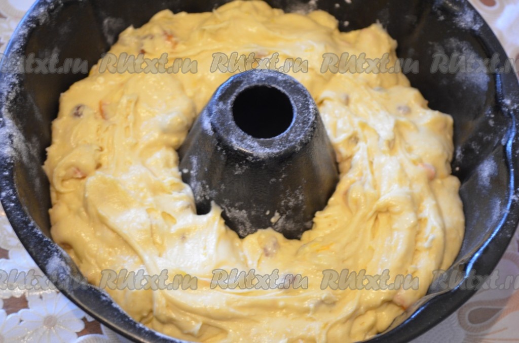 Выложить тесто в форму. Поставить кулич в духовку при 180 градусах примерно на 40 минут. Готовность проверять зубочисткой, она должна выходить сухой.
