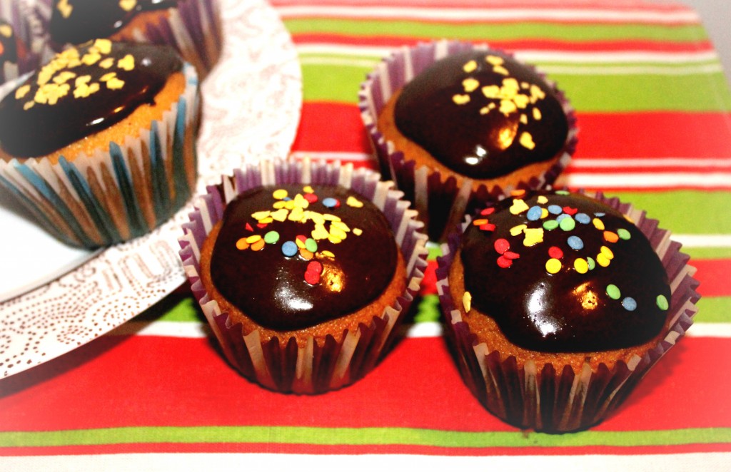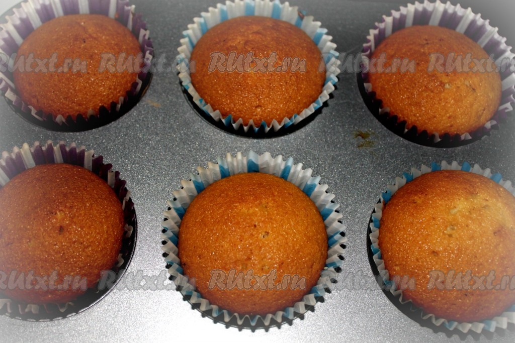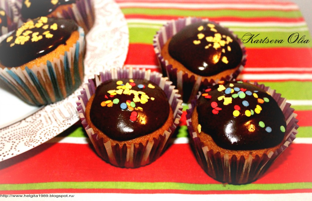 Готовность можно легко проверить сухой деревянной шпажкой: если шпажка после прокалывания кекса останется сухой, значит выпечка готова. Достать готовые кексы из духовки, остудить их. В принципе выпечка готова, её можно подавать к столу. Но кексы получатся особенно вкусными и нарядными, если покрыть их шоколадной глазурью.