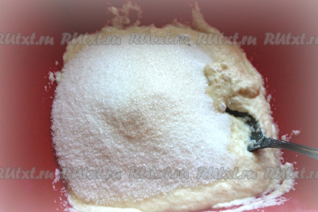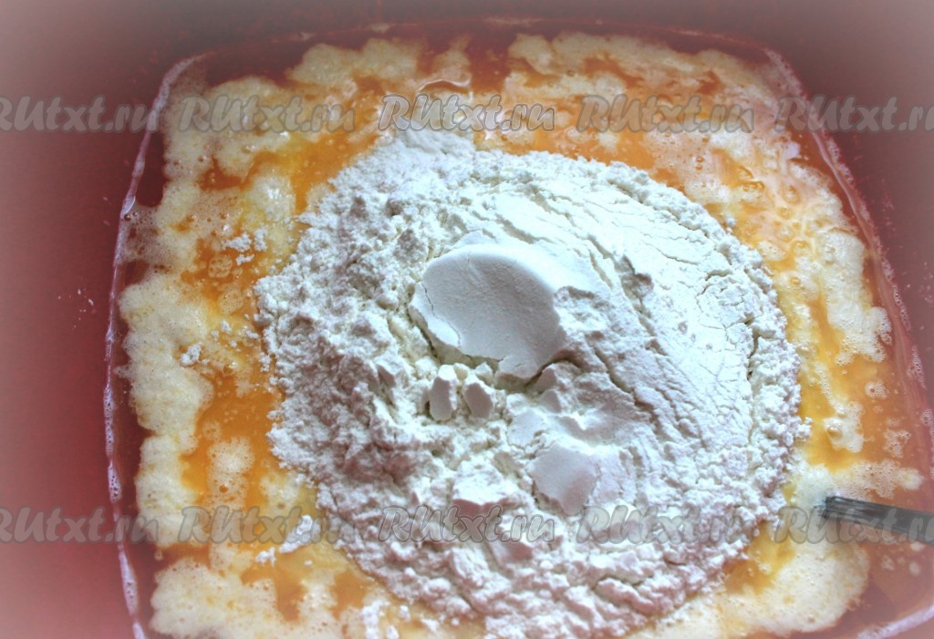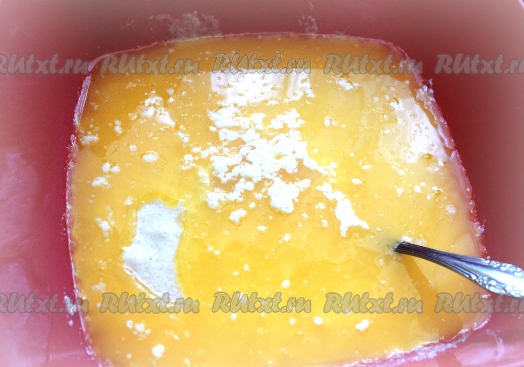 Сливочное масло растопить, дать ему немного остыть и влить в тесто, снова перемешать.