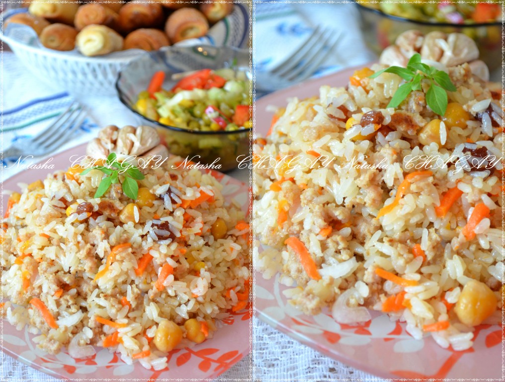 После этого огонь выключить и не открывать крышку еще 15-20 минут. Потом можно перемешать рис с нутом и мясным фаршем. Очень вкусно, всем советую.