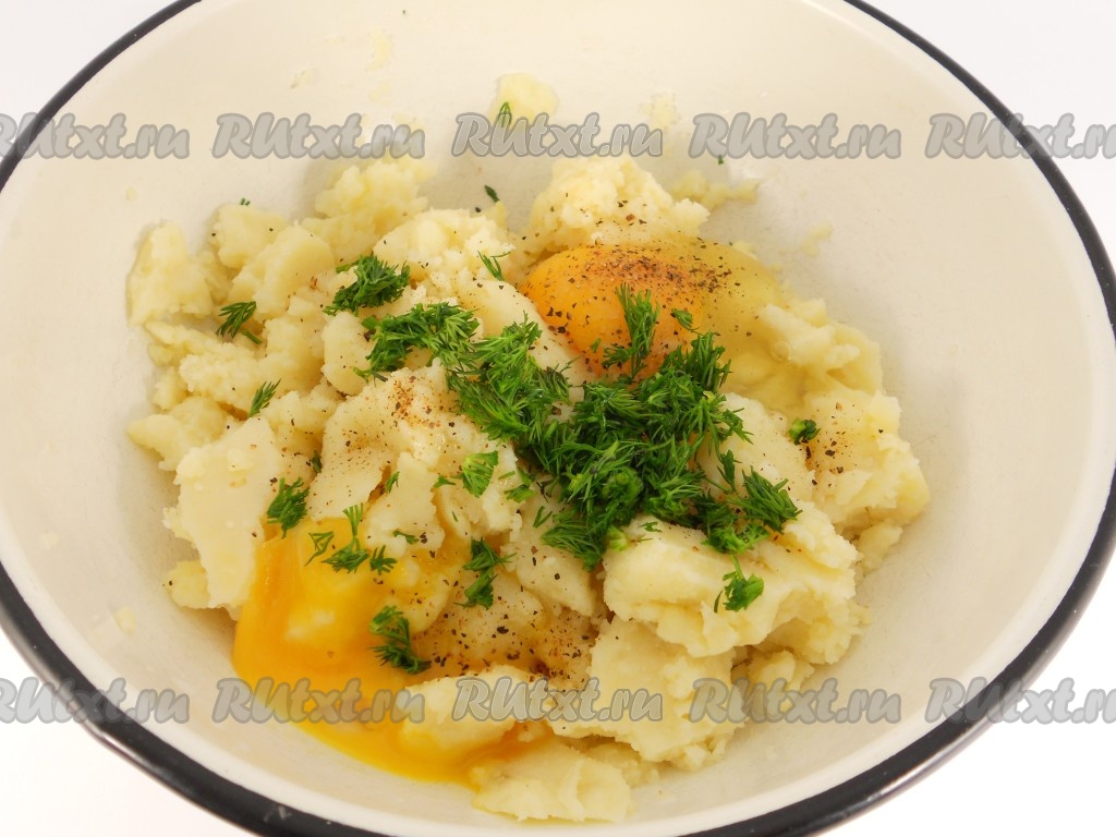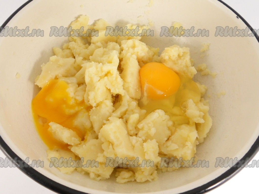 К картофельному пюре (охлажденному) добавить 1 яйцо и 1 желток, белок оставить.