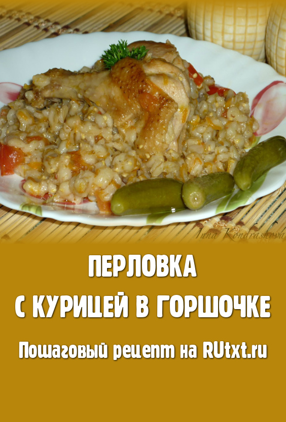 Перловая каша, приготовленная в горшочке в духовке, получается сытной, рассыпчатой и очень вкусной. Кусочки курицы становятся сочными. Блюдо подаём к столу горячим, а маринованный огурчик станет прекрасным дополнением к перловке.