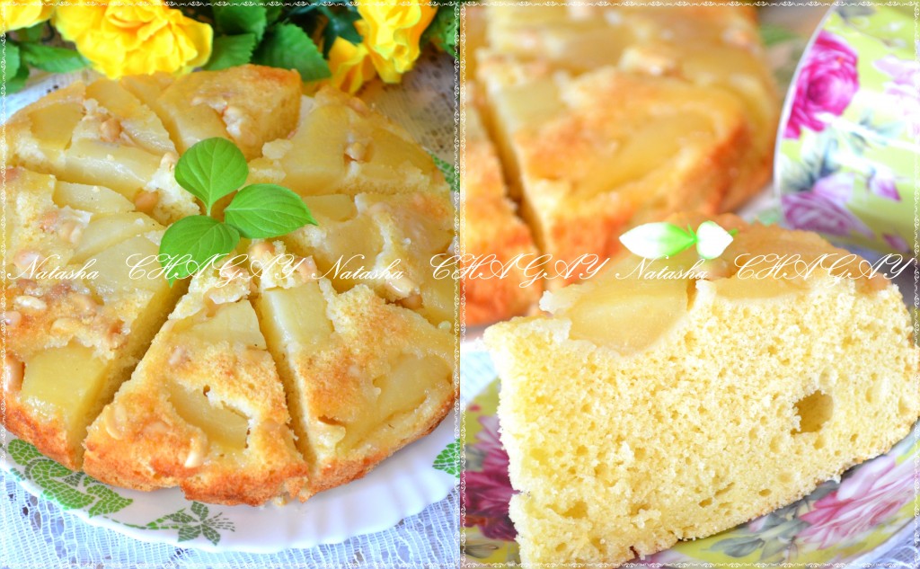 Затем разрезать ароматный, нежный пирог-перевёртыш на кусочки и можно подавать к столу. Благодаря грушам в карамели, выпечка получается очень вкусной, она станет украшением любого чаепития!