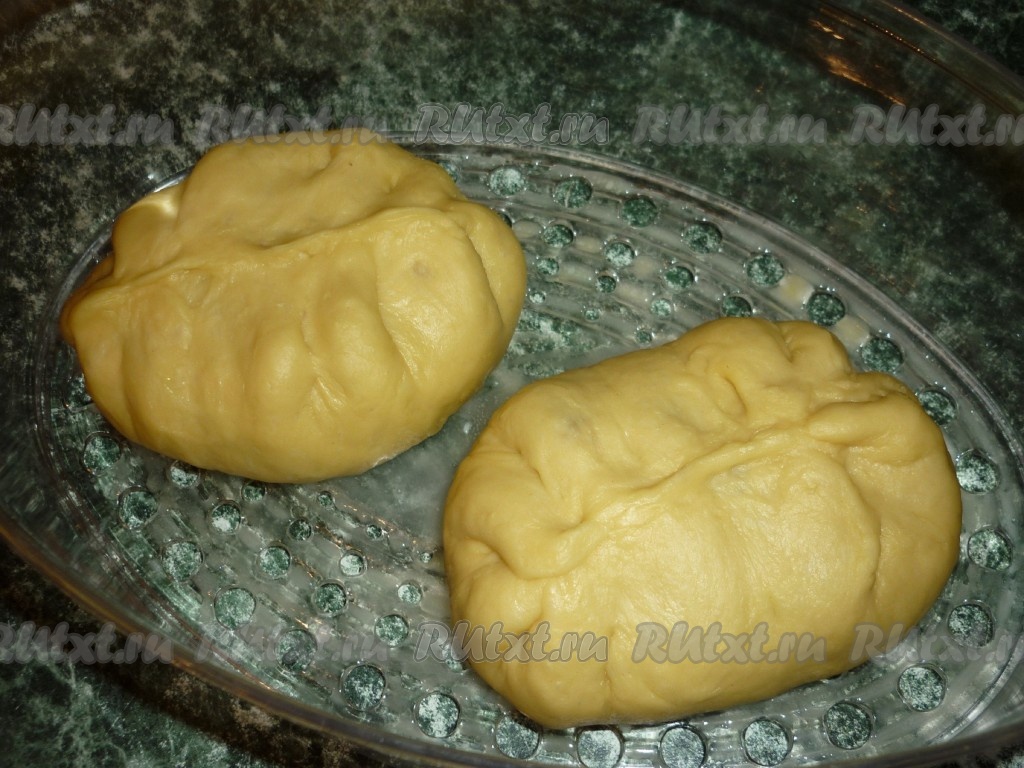 Тесто делим на две части. Каждую часть теста раскатываем в лепёшку.