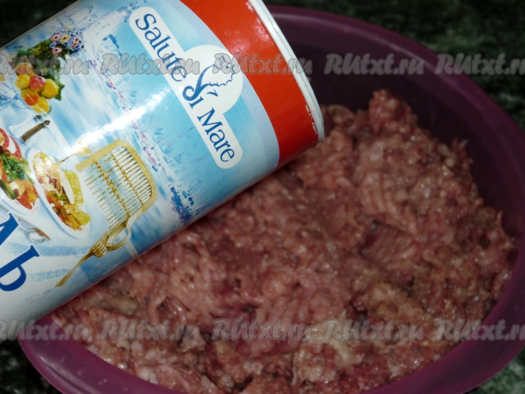 Свинину моем, обсушиваем. Лук и чеснок очищаем. Свинину, лук и чеснок перекручиваем 2 раза на мясорубке. В получившийся фарш всыпаем соль, специи (я в качестве специй добавила чёрный молотый перец и 1 чайную ложку итальянских трав), очень тщательно вымешиваем и кладём в морозилку минут на 15.